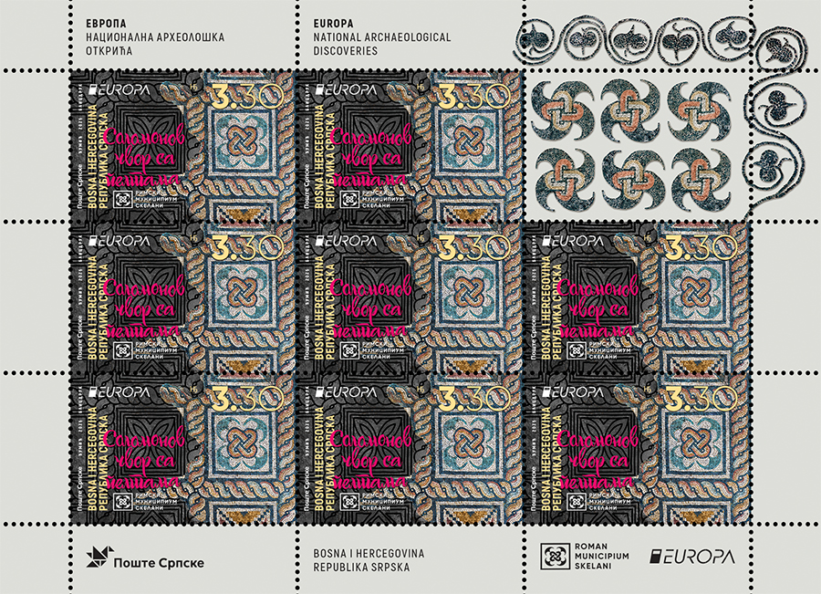 Naziv izdanja: Evropa - nacionalna arheoloska otkrica Datum izdanja: 24.04.2025. Autor: Nebojsa Djumic Vrsta izdanja: prigodno Tehnika štampanja: višebojni ofset Šalterski tabak: 8+1 Papir: muflep 100g Štamparija: Blicdruk, Sarajevo
