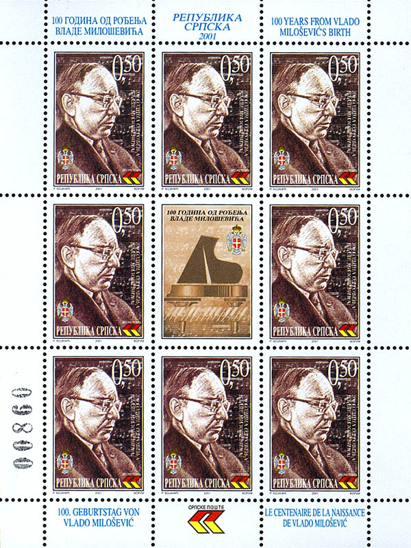 Motiv: Portret Vlade Miloševića Kataloški broj: SP 199 Zupčanje: 13 3/4 Nominalna vrijednost: 0,50 KM Tiraž: 50.000