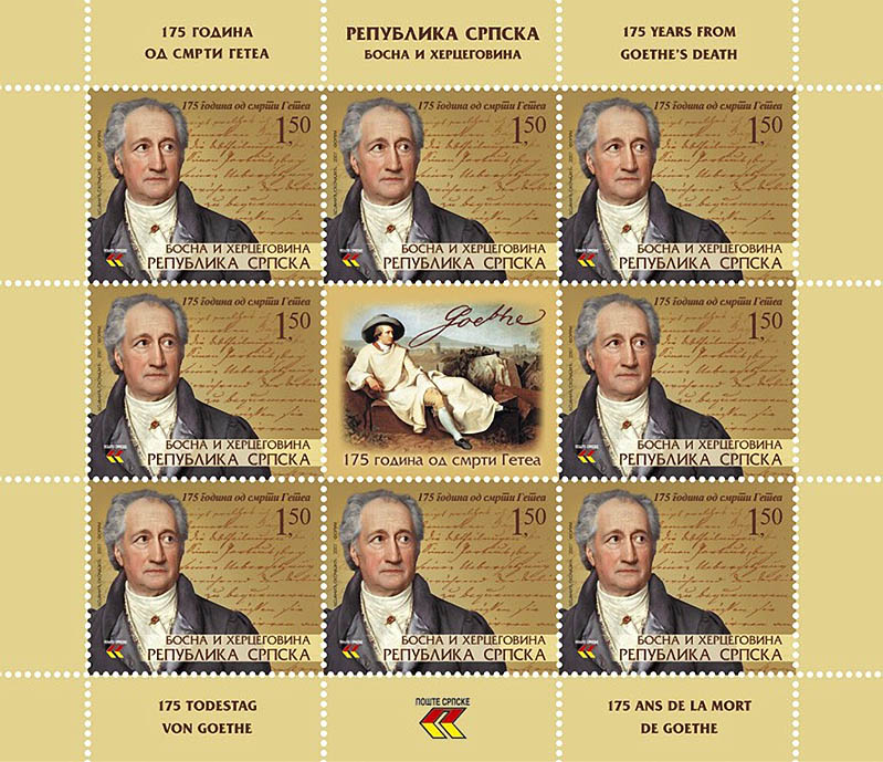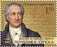 Motiv: 175 godina od smrti Getea Kataloški broj: SP 381 Zupčanje: 13 3/4 Nominalna vrijednost: 1,50 KM Tiraž: 20 000