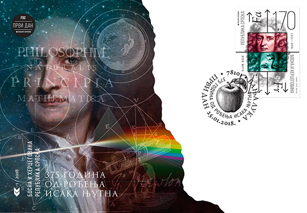 Motiv: Isak Njutn Kataloški broj: 743 Zupčanje: 13 3/4 Nominalna vrijednost: 1,70 KM Tiraž: 15 000