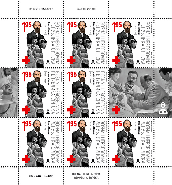 Jovan Mašin bio je dvorski ljekar kneza Mihajla i kralja Milana Obrenovića, osnivač Srpskog ljekarskog društva, član Društva srpske slovesnosti i kasnije Srpskog učenog društva. Rođen je 14. jula 1820. godine u Cerhenici ( istočno od Praga) u Češkoj, kao Jan Mašin. Gimnaziju je završio u Pragu, medicinske nauke u Beču, magisterijum iz hirurgije u Pešti, a magisterijum ginekologije u Pragu. Bio je oženjen Barborom, rođ. Všeteček i sa njom je imao tri sina i dvije ćerke: Svetozara (inženjera, prvog muža kasnije srpske kraljice Drage), Aleksandra (vođu zavjerenika u Majskom prevratu), Nikolu, Leposavu i Poleksiju. Jedno vrijeme bio je gradski ljekar u Nimburku. Po savjetu Jana Šafarika stigao je 1846.godine u Srbiju. Počeo je raditi u Valjevu. Više puta učestvovao je u suzbijanju goveđe kuge. Prešao je 1853. na dužnost fizikusa varoši Beograd. Te godine postao je član Stalne ljekarske komisije. Od 1859. do 1864. bio je beogradski okružni ljekar. Za vrijeme bombardovanja Beograda 1862. zajedno sa dr Lindermajerom zadužen je da napravi plan priprema za slučaj rata u Beogradu. Bio je lični ljekar kneza Mihaila i kralja Milana. Pratio je 1867. godine kneza Mihaila kao savjetnik i član delegacije prilikom njegovoga puta u Carigrad, a povodom vraćanja gradova Srbiji. Jedan je od 15 osnivača i prvi potpredsjednik Srpskog ljekarskog društva 1872. godine. Postavljen je 1871. za glavnog vojnog ljekara, a 1872. postao je šef Vojne bolnice. Кao načelnik saniteta Moravskog korpusa i sa činom potpukovnika učestvovao je u Drugom srpsko-turskom ratu. Autor: Nebojša Đumić Izdavač: Pošte Srpske a.d. Banjaluka