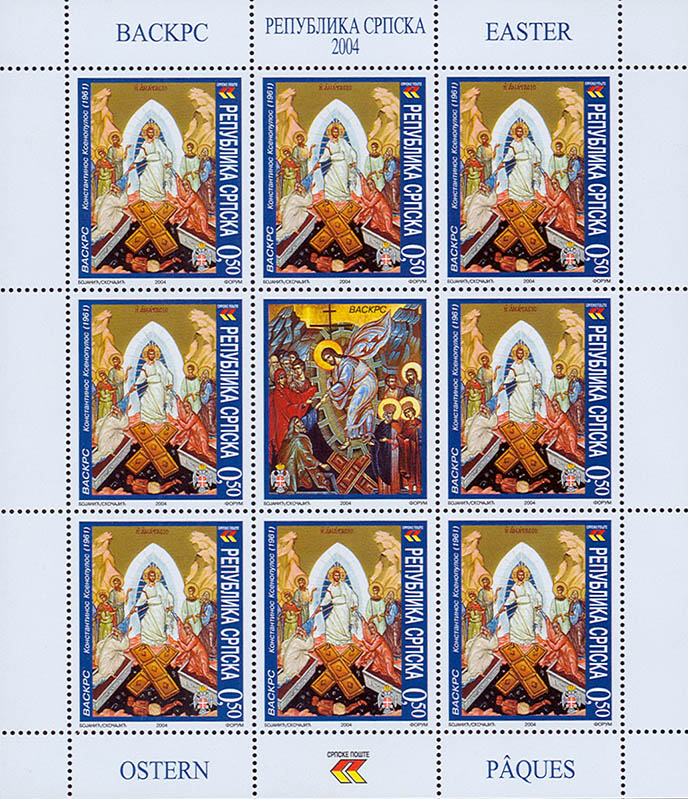 Motiv: Vaskrsenje Hristovo, djelo slikara Eremija Profeta Kataloški broj: SP 298 Zupčanje: 13 3/4 Nominalna vrijednost: 1,00 KM Tiraž: 20.000
