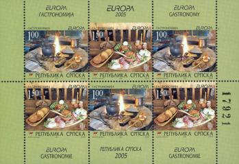 Naziv izdanja: Europa 2005 - Gastronomija Datum izdanja: 04.04.2005 Autor: Bojanić/Skočajić Vrsta izdanja: prigodno Tehnika štampanja: višebojni ofset Šalterski tabak: 8+1 komad (3x3) i karnet sa 3 serije Papir: tullis russell, 100 gr Štamparija: FORUM - Novi Sad