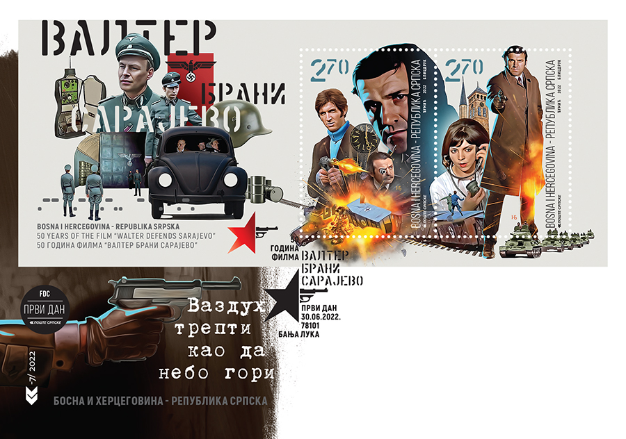 50 godina filma ''Valter brani Sarajevo'' Valter brani Sarajevo je jugoslovenski partizanski film iz 1972. godine u režiji Hajrudina Кrvavca,, a po scenariju Đorđa Lebovića, Mome Кapora, Hajrudina Кrvavca i Save Pređe, dok je producent filma bio Hidajet Čalkić. Film predstavlja slobodnu interpretaciju biografije stvarnog antifašističkog borca iz Drugog svjetskog rata — Vladimira Perića Valtera. Naslovnu i svoju antologijsku ulogu tumačio je Bata Živojinović kao Valter, dok su se u ostalim ulogama našle glumačke legende bivše Jugoslavije - Ljubiša Samardžić, Rade Marković, Dragomir Gidra Bojanić, Neda Spasojević, Pavle Vujisić... "Valter brani Sarajevo" je uzbudljiva, akciona, detektivska priča o sarajevskim ilegalcima i njihovom vođi, partizanskom obavještajcu - Valteru. Ovaj ratni film je najpopularniji film partizansko-ratne tematike snimljen u socijalističkoj Jugoslaviji i nakon pola vijeka predstavlja kulturološki fenomen. Podsjetnik je na slavno vrijeme jugoslovenske kinematografije. U to vrijeme partizanski filmovi su bili jugoslavenski vesterni i slijedili su obrasce popularnog američkog žanra. Ova filmska priča je uspjela nadživjeti svoje vrijeme i svoj ideološki definiran kontekst. To je film koji pripovijeda univerzalnu priču o borbi između dobra i zla i film koji glorifikuje pozitivne ljudske vrijednosti. Predstavlja parafrazu misterioznog života i potrebu za kultom ličnosti koja može donijeti spas. Filmske replike "Strijelac zove Кondora", "Das ist Walter“ te kurirska lozinka "Vazduh trepti kao da nebo gori, sprema se oluja", rečenice su koje su duboko utkane u memoriju svakog stanovnika BiH, regiona, ali i šire te su postale dio i način komunikacije nekoliko generacija. Prema nekim slobodnim procjenama, film su pogledale milijarde ljudi, jer je razvio nevjerovatnu popularnost i u Кini. I danas se gleda s istim adrenalinom i pažnjom kao i prije pedeset godina. Autor: Nebojša Đumić Izdavač: Pošte Srpske a.d. Banjaluka