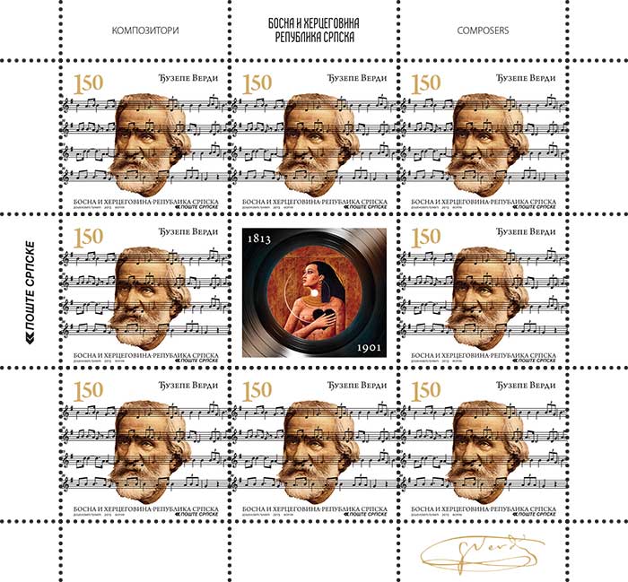 Motiv: Ričard Vagner Kataloški broj: 595 Zupčanje: 13 3/4 Nominalna vrijednost: 1,50 KM Tiraž: 20 000