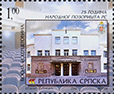 Motiv: Zgrada Narodnog pozorišta RS, u pozadini današnji izgled velike sale Kataloški broj: SP 349 Zupčanje: 13 3/4 Nominalna vrijednost: 1,00 KM Tiraž: 12 000