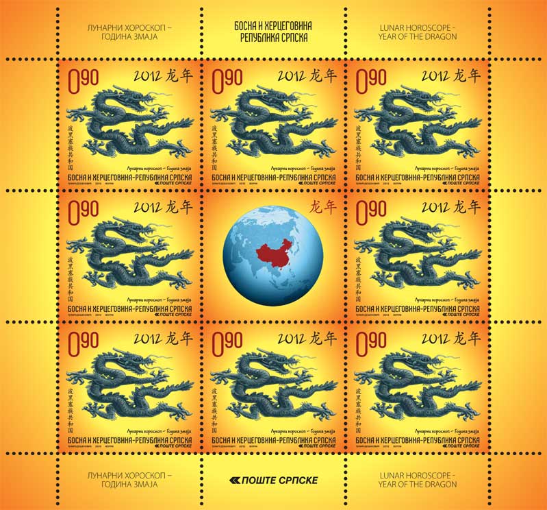 Naziv izdanja: Lunarni horoskop - godina zmaja Datum izdanja: 14.02.2012. Autori: mr Božidar Došenović i Nebojša Đumić Vrsta izdanja: prigodno Tehnika štampanja: višebojni ofset Šalterski tabak: 8+1 Papir: muflep 100g Štamparija: Forum, Novi Sad