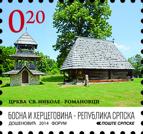Motiv: Crkva brvnara u Romanovcima Kataloški broj: 640 Zupčanje: 13 3/4 Nominalna vrijednost: 0,20 KM Tiraž: 400 000