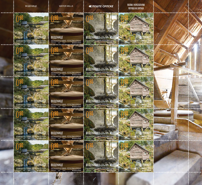 Mljevenje žita bilo je potrebno od prve upotrebe žitarica za prehranu, još od postanka prvih poljoprivrednih zajednica. U mlađem kamenom dobu žito se mljelo ručno, uz pomoć dva kamena, donji kamen je bio udubljena ploča, a gornji okrugli kamen. Sa grčkom kolonizacijom obala sjevernog mediterana i njihovim uticajem na civilizaciju tadašnje varvarske Evrope dolazi do preuzimanja mnogih tehnoloških metoda, među ostalim i do usvajanja klasičnog žrvnja sa dva okrugla kamena sa ručkom za ručno mljevenje žita. Uz taj jednostavan, priručni način mljevenja žita za ličnu upotrebu u domaćinstvu, već su stare civilizacije razvile mljevenje veće količine žita uz pomoć snage ljudi ili životinja, ali koristeći i vjetar a prije svega snagu vode. Vodenica je mlin koji se pokreće snagom vode. Vodenice koje su se nalazile na rijekama nazivane su rekavicama a one koje su se nalazile na potocima nazivane su potočarama. Vodenica radi tako što voda udara u drveno kolo sa perima (kašikama) i ono se tada pokreće. Taj drveni točak okreće preko vretena gornji mlinski kamen u vodenici. Žito se stavlja u koš od dasaka. Na kamenu je čeketalo koje skakuće po kamenu i treska kutlaču na košu, iz koje izlazi žito koje kamen, okrećući se, melje. Brašno pada u sanduk ili mučnjak. Autor: mr Božidar Došenović Izdavač: Pošte Srpske a.d. Banjaluka Stručna saradnja: Muzej Republike Srpske, muzejski savjetnik – etnolog Vladimir Đukanović