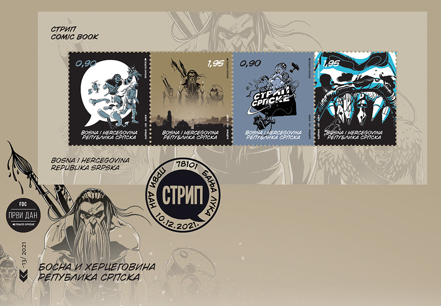 Postojanje stripa povezano je s pojavom masovnih medija. Iako u početku egzistira kao dodatna zabava za čitaoce novina ubrzo postaje nezavisni medij ili kako se voli reći “deveta umjetnost”. Početkom 1997. godine u Republici Srpskoj počinje da izlazi prvi strip magazin. U izdanju kuće "Media-centar Prelom" u Banjoj Luci se pojavljuje prvi broj magazina "Žalosna sveska". Tokom 2007. godine "Prva izložba stripa Srpske" postavljena je u Laktašima, a 2008. godine je održan i prvi salon stripa – “Laktaši 2008”. U Banjoj Luci je 2011. osnovano Udruženje strip autora i obožavalaca stripa Republike Srpske "Deveta dimenzija" koje okuplja profesionalne crtače, scenariste, publiciste i ljubitelje stripa u Republici Srpskoj. Iste godine ovo udruženje je pokrenulo strip magazin "Parabelum (Parabellum)". Prvi Međunarodni salon stripa "Deveta dimenzija" u Banjoj Luci organizovan je 2018. Pošte Srpske su izdavanjem ove poštanske marke htjele, na jedinstven način, promovisati ovu nepravedno zapostavljenu vrstu umjetnosti, te ukazati na mnogo uspješnih strip crtača sa naših prostora. Autor ovog izdanja je Dejan Šijuk, grafički dizajner i ilustrator iz Banja Luke. Stripom se profesionalno bavi već 20 godina. Dobitnik je mnogih nagrada i priznanja za dizajn, ilustraciju i marketinške kampanje. Autor: Dejan Šijuk Izdavač: Pošte Srpske a.d. Banjaluka