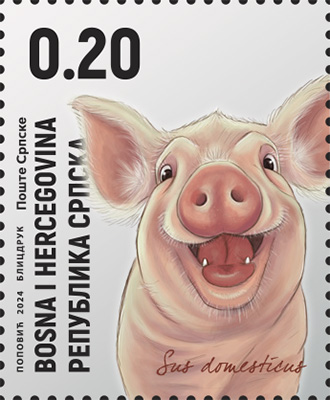 Motiv: svinja Кataloški broj: 980 Zupčanje: 13 3/4 Nominalna vrijednost: 0,20 КM Tiraž: 150 000