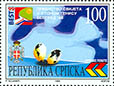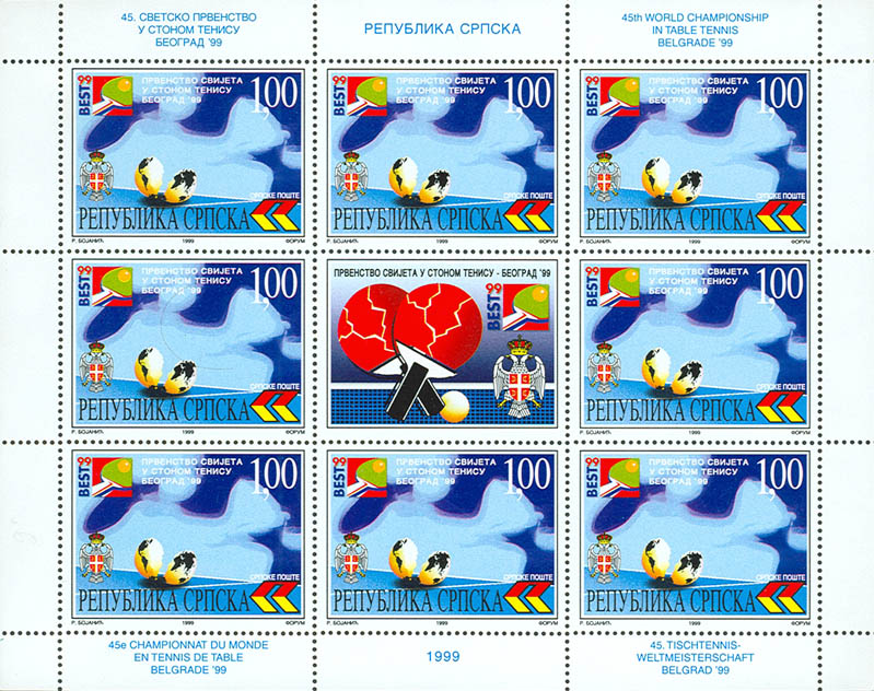 Motiv: Stonoteniser pri serviranju napuklom lopticom Kataloški broj: SP 123 Zupčanje: 13 3/4 Nominalna vrijednost: 1,00 KM Tiraž: 14.000