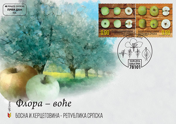 Motiv: Jabuka - Prijedorska zelenika Kataloški broj: 642 Zupčanje: 13 3/4 Nominalna vrijednost: 0,90 KM Tiraž: 15 000