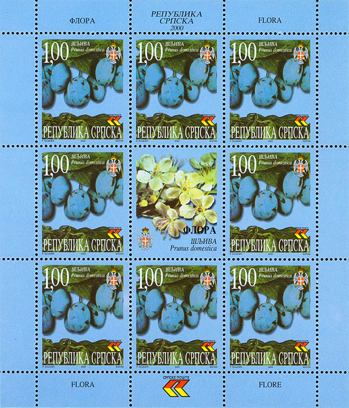 Naziv izdanja: Flora Republike Srpske Datum izdanja: 22.03.2000 godine Autor: Radomir Bojanić Vrsta izdanja: prigodno Tehnika štampanja: višebojni ofset Šalterski tabak: 8+1 komad (3x3) Papir: kredast Štamparija: FORUM - Novi Sad