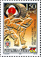 Motiv: Karatisti u borbi i zlatna medalja Kataloški broj: SP 210 Zupčanje: 13 3/4 Nominalna vrijednost: 1,50 KM Tiraž: 20.000