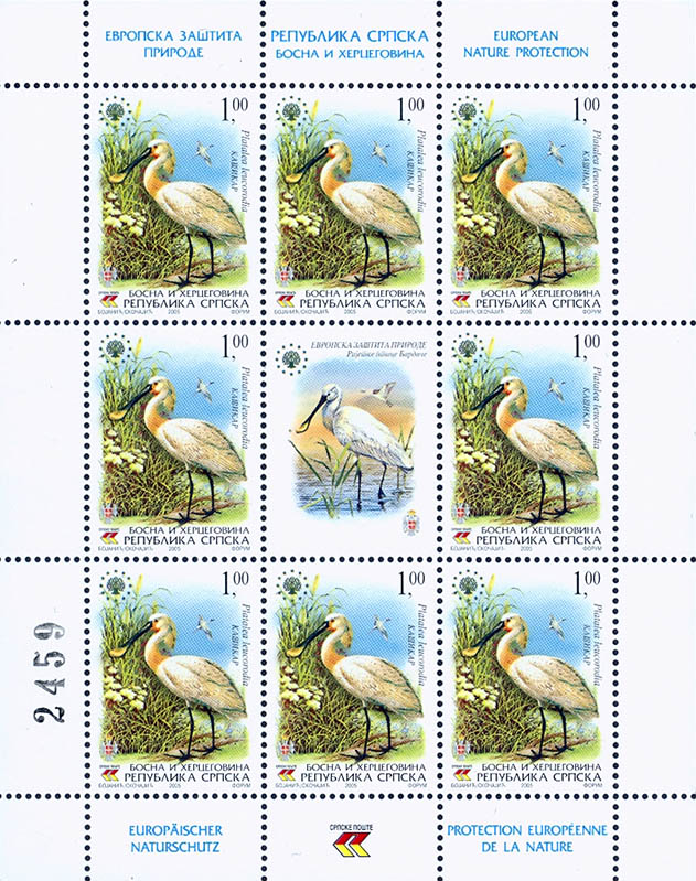 Motiv: Kašikar (Platalea leucorodia) Kataloški broj: SP 356 Zupčanje: 13 3/4 Nominalna vrijednost: 1,00 KM Tiraž: 20 000