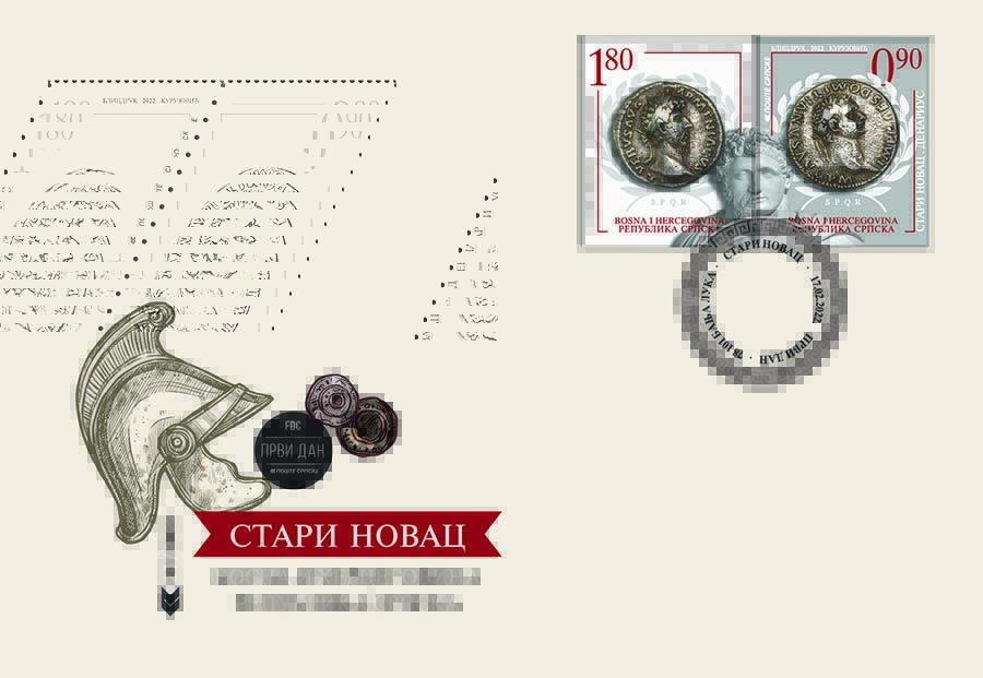 У систему древних римских валута денаријус (лат. денариус, множ. денарии) је био мали сребрњак први пут искован године 211. п.н.е. Почетком 1. вијека, један денаријус је био дневница једног радника. Био је најчешћа кованица у оптицају, али је с временом девалвирао све док га није замијенио антонинијан. Денариус је био изворни новац од 10 аса и у вријеме царства није никада означаван бројком. Овај новац је био сребрна новчана јединица у римском царству све до 248. године пне. Занимљиво је како је латински назив денариус преживио вијекове и у различитим облицима усвојен од других народа: у Француској је дениер назив за новчић, динар код Арабљана је често назив националне валуте, као и у бившој Југославији и садашњој Србији; Македонци имају денар; код Словенаца денар, а код Италијана денаро је новац, код Шпанаца то је динеро итд. Наравно, насљеђе које данас баштинимо од Старог Рима много је шире и богатије него што су неке ријечи; ту су још и писмо, архитектура, умјетност, хисторија, књижевност, право, политика... Аутор: Тања Курузовић Издавач: Поште Српске а.д. Бањалука Сарадња: Удружење колекционара и љубитеља историје ‘’Денариус’’, Градишка; Мешић Ален, Мирослав Кецман, Албин Зидар