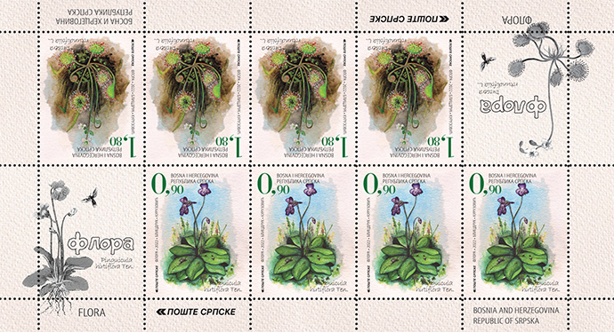 Motiv: Мasnica, Pinguicula hirtiflora Ten. Kataloški broj: 875 Zupčanje: 13 3/4 Nominalna vrijednost: 0,90 КМ Tiraž: 15 000