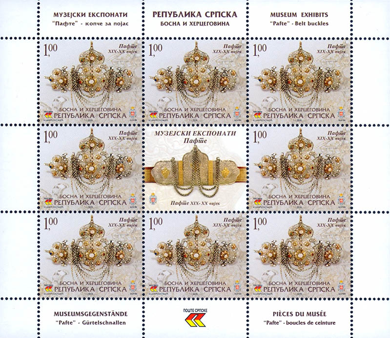 Naziv izdanja: Muzejski eksponati Datum izdanja: 28.11.2006. Autor: Bojanić/Skočajić Vrsta izdanja: prigodno Tehnika štampanja: višebojni ofset Šalterski tabak: 8+1 (3x3) Papir: muflep,100 gr Štamparija: FORUM Novi Sad