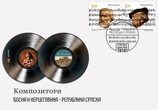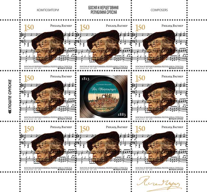 Motiv: Ričard Vagner Kataloški broj: 595 Zupčanje: 13 3/4 Nominalna vrijednost: 1,50 KM Tiraž: 20 000