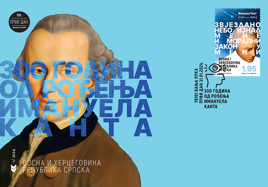 Motiv: Imanuel Kant Кataloški broj: 958 Zupčanje: 13 3/4 Nominalna vrijednost: 1.95 КM Tiraž: 8 000
