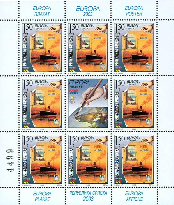 Motiv: Plakat posvećen avijaciji i Plakat posvećen mornarici Kataloški broj: SP 271a, SP 272a (karnet) Zupčanje: 13 3/4 Nominalna vrijednost: 7,50 KM Tiraž: 16.000