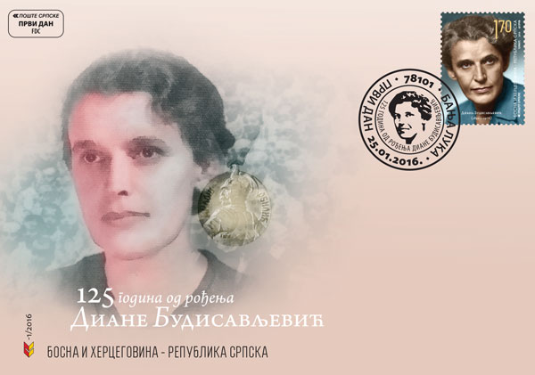 Naziv izdanja: 125 godina od rođenja Diane Budisavljević Datum izdanja: 25.01.2016. Autor: Nebojša Đumić Vrsta izdanja: prigodno Tehnika štampanja: višebojni ofset Šalterski tabak: 8+1 Papir: muflep 100g Štamparija: Forum Novi Sad