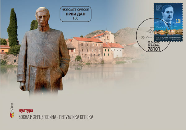 Jovan Dučić se rodio u Trebinju 15. februar 1874.godine. Bio je srpski i jugoslovenski pisac, pjesnik i diplomata. Jedan je od najznačajnijih pjesnika srpskog modernizma i najznačajniji liričar. Jedan je i od osnivača Narodne odbrane, nacionalne nevladine organizacije u Кraljevini Srbiji. Prvu zbirku pjesama Dučić je objavio u Mostaru 1901. u izdanju mostarske Zore, zatim drugu u Beogradu 1908. u izdanju Srpske književne zadruge. Pisao je dosta i u prozi: nekoliko literarnih eseja i studija o piscima, Blago cara Radovana i pesnička pisma iz Švajcarske, Grčke i Španije. On otkriva sasvim nove motive u našoj poeziji, dotle neslućene, rijetka osjećanja, bizarna, prefinjena. Čak i lična raspoloženja, svoju erotiku na primjer, on neće reći jednostavno niti će dozvoliti da izgleda obična. On ima dvostruki strah: od vulgarnosti misli i osećanja i vulgarnosti izraza. Snaga i ljepota njegove poezije je u izražaju. On je pjesnika shvatio kao „kabinetskog radnika i učenog zanatliju na teškom poslu rime i ritma“. Biran je za dopisnog člana Srpske kraljevske akademije, a za redovnog člana izabran je 1931. godine. Najznačajnije kulturno dešavanje u toku godine u Dučućevom rodnom gradu Trebinju su Dučićeve večeri poezije. Ovom prilikom u gradu se okupe najznačajnije ličnosti svijeta poezije iz regiona. Piscu najboljeg djela iz prethodne godine se dodjeljuje Dučićeva nagrada. Jovan Dučić preminuo je 7. aprila 1943. godine u američkom gradu Geri, Indijana. Autor: mr Božidar Došenović Izdavač: Pošte Srpske a.d. Banja Luka