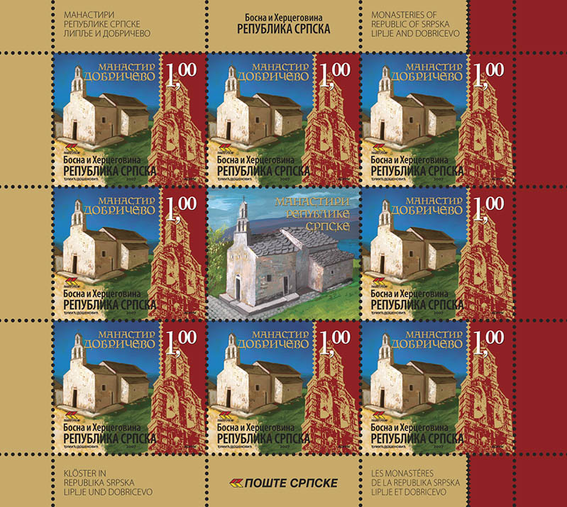 Motiv: Manastir Dobričevo Kataloški broj: 388 Zupčanje: 13 3/4 Nominalna vrijednost: 1,00 KM Tiraž: 15 000