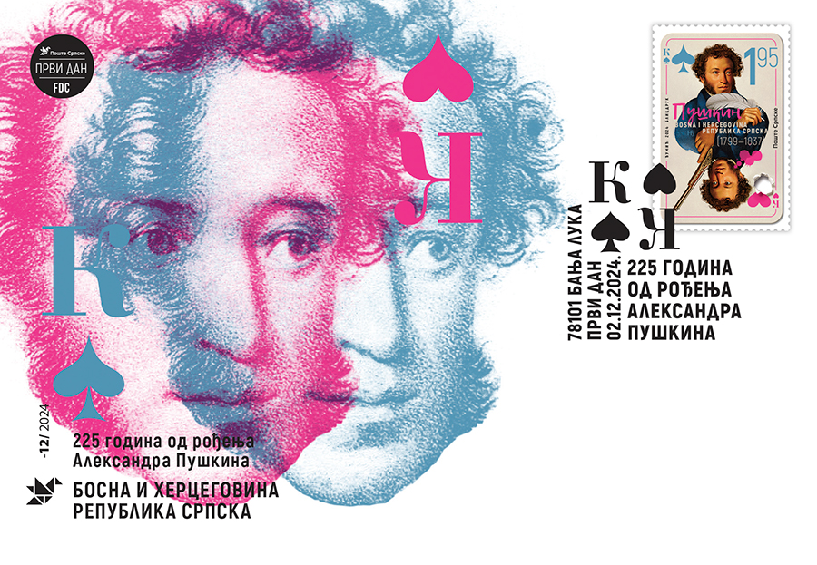 Naziv izdanja: 225 godina od rodjenja Aleksandra Puskina Datum izdanja: 02.12.2024. Autor: Nebojša Đumić Vrsta izdanja: prigodno Tehnika štampanja: višebojni ofset Šalterski tabak: 9 Papir: muflep 100g Štamparija: Blicdruk, Sarajevo