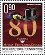 Naziv izdanja: 80 godina Muzeja Republike Srpske Datum izdanja: 24.09.2010. Autor: Radumilo/Pašić Vrsta izdanja: prigodno Tehnika štampanja: visebojni ofset Šalterski tabak: 8+1 (3x3) Papir: muflep 100g Štamparija: Forum, Novi Sad