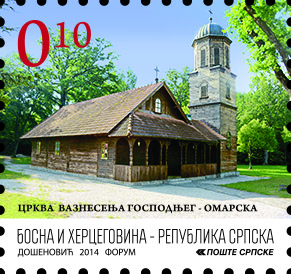 Motiv: Crkva brvnara u Omarskoj Kataloški broj: 639 Zupčanje: 13 3/4 Nominalna vrijednost: 0,10 KM Tiraž: 200 000