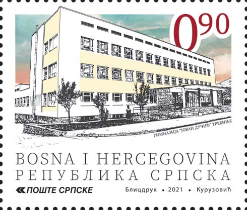 Na prijedlog Gradskog vijeća Trebinja i Pokrajinske uprave Bosne i Hercegovine 9. avgusta 1921. godine Ministarstvo prosvjete Кraljevine SHS donijelo je odluku da dotadašnja Viša trgovačka škola prerasta u Nižu Gimnaziju. Gimnazija je počela raditi u zgradi Trgovačke škole. Godine 1935. prelazi u zgradu, u Starom gradu (Кastelu), koju je ustupilo Ministarstvo vojske. U toj zgradi danas je smješten Muzej Hercegovine. Ministar inostarnih djela Кraljevine Jugoslavije, Milan Stojadinović, na intervenciju diplomate i pjesnika Jovana Dučića, donosi Odluku o prerastanju Gimnazije u višu državnu Realnu Gimnaziju 1935. godine. Jovan Dučić i Milan Stojadinović 1938. godine postavljaju kamen temeljac za novu zgradu Gimnazije. Do rata su napravljeni samo temelji za novu zgradu. Godine 1958. na tom mjestu je u novoj zgradi počela da radi Ekonomska škola. Od 1960. do 1962. godine Gimnazija je bila smještena u zgradi Pravoslavne crkvene opštine, danas Eparhijskom domu, da bi se tada uselila u novo izgrađenu zgradu Ekonomske škole. Godine 1964. formirana je nova ustanova Školski centar gdje su do danas smještene sve srednje škole u Trebinju. U vremenu od 1980. do 1991. godine, zbog reforme srednjeg obrazovanja, učenici se ne upisuju u Gimnaziju, nego u tadašnji OOUR 2, gdje se upisuju učenici jezičko–prevodilačke, matematičko–fizičko–računarske i elektrotehničke škole. Od 1991. godine ponovo se otvaraju samostalne Gimnazije, tako da sa Odlukom SO Trebinje o osnivanju počinje sa radom Gimnazija „Jovan Dučić“. Autor: Tanja Kuruzovic Izdavač: Pošte Srpske Banja Luka Saradnja: JU Gimnazija "Jovan Dučić" Trebinje, Mišo Pešić, direktor