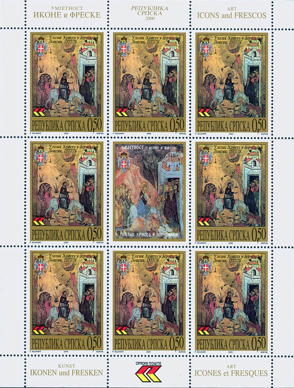 Naziv izdanja: Umjetnost Datum izdanja: 20.12.2000. Autor: Radomir Bojanić Vrsta izdanja: prigodno Tehnika štampanja: višebojni ofset Šalterski tabak: 8+1 (3x3) Papir: kredast Štamparija: FORUM - Novi Sad