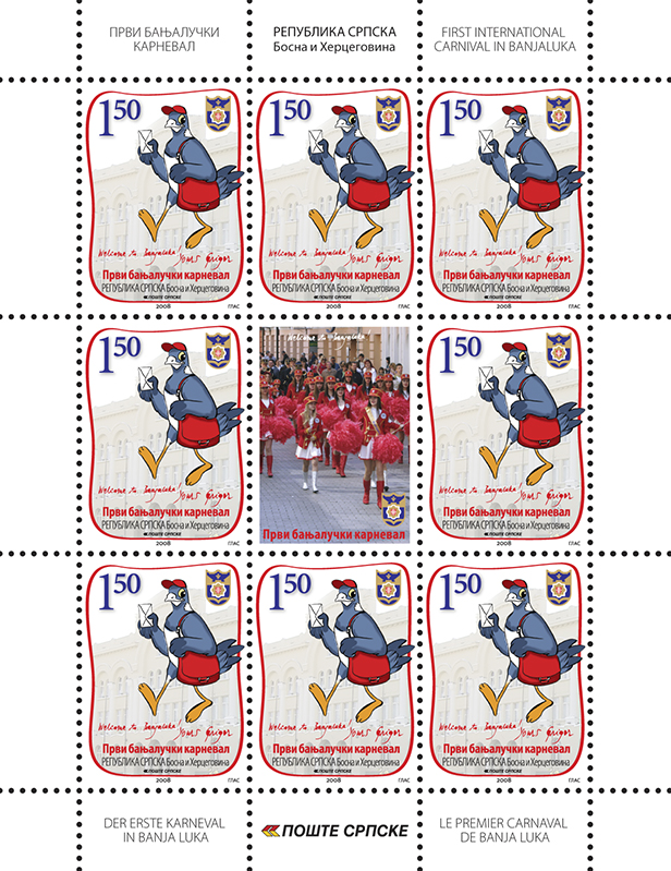 Motiv: Golub Grigor, maskota Karnevala Kataloški broj: 424 Zupčanje: 13 3/4 Nominalna vrijednost: 1,50 KM Tiraž: 20 000