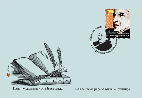 Naziv izdanja: 120 godina od rođenja Milana Budimira Datum izdanja: 11.02.2011. Autor: Nenad Malešević Vrsta izdanja: prigodno Tehnika štampanja: višebojni ofset Šalterski tabak: 8+1 Papir: muflep 100g Štamparija: Forum, Novi Sad