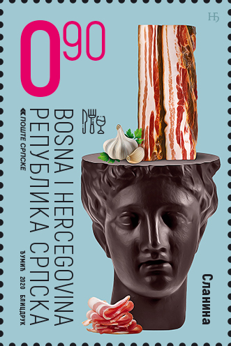 Motiv: slanina, luk, statua Kataloški broj: 836 Zupčanje: 13 3/4 Nominalna vrijednost: 0,90 КМ Tiraž: 15 000